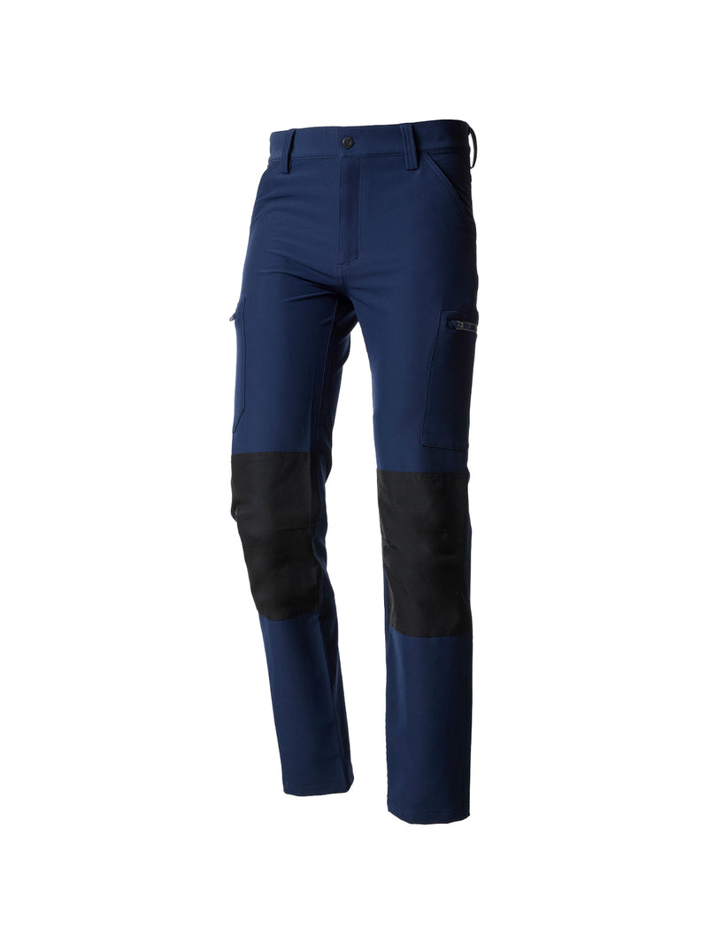 Le ginocchia rinforzate in tessuto a contrasto aumentano la durata del pantalone, mentre le numerose tasche – due in vita, due cargo laterali con zip coordinate e una posteriore con chiusura a zip – garantiscono massima praticità.