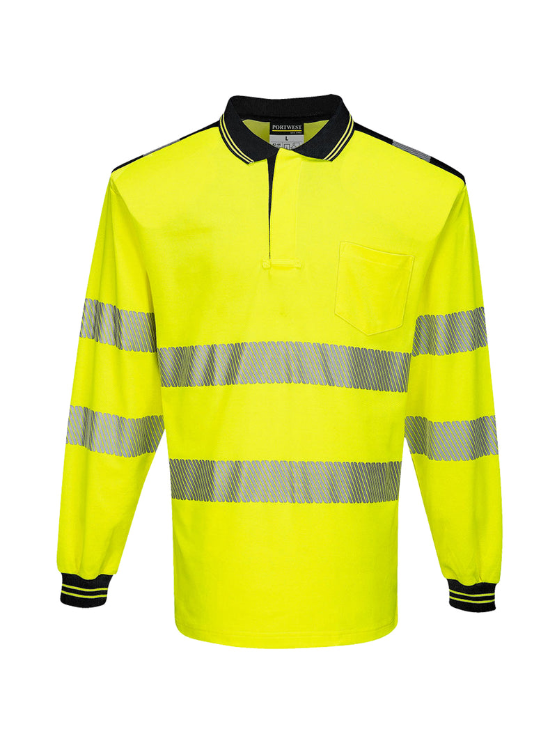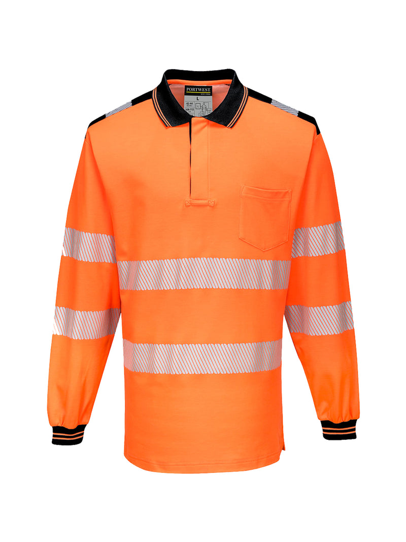 AccediPolo a maniche lunghe in tessuto Cotton Comfort, traspirante e contro l‘umidità. Polsini a costine e anello sotto la chiusura ideale per aggancio di occhiali/penne.