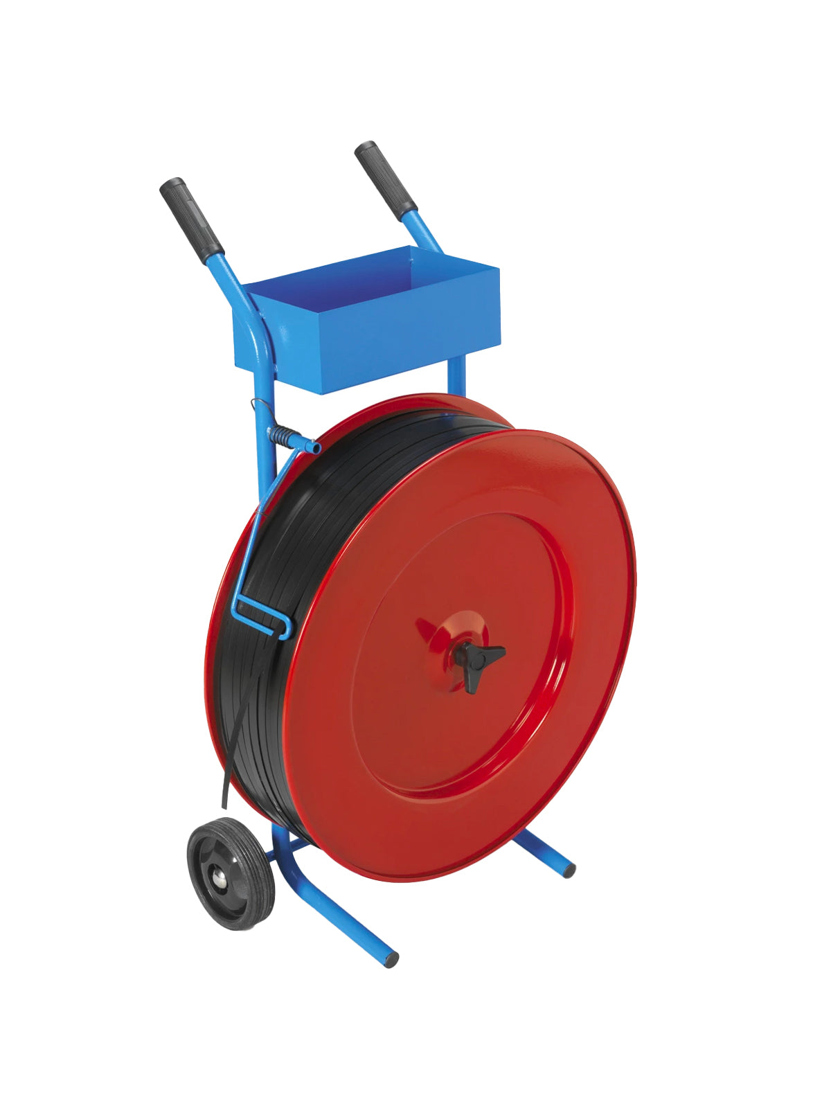 AccediPortabobine Carrellato Eco è progettato per l'uso con bobine di reggia in polipropilene, ideale per operazioni di imballaggio quotidiane in ambienti chiusi. Con un diametro massimo della bobina di 392 mm e dischi in acciaio, offre stabilità e resistenza per un uso non gravoso, migliorando l’efficienza del lavoro.