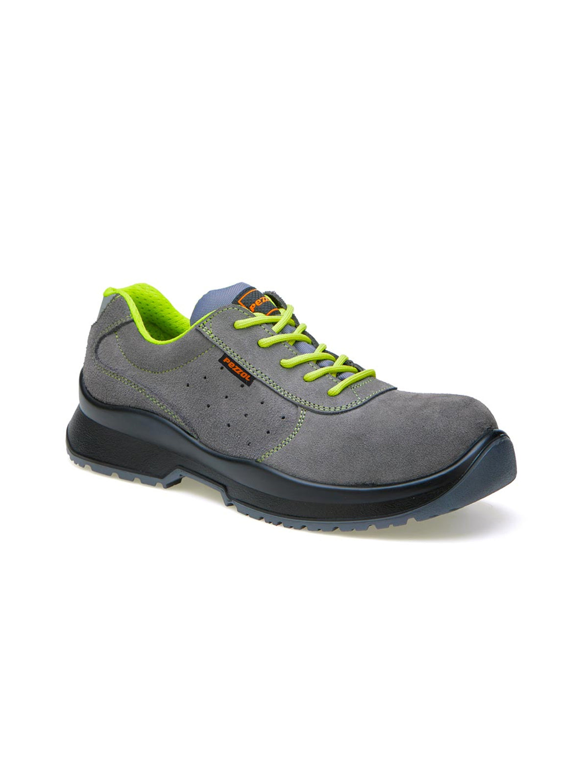 Scarpa di sicurezza con tomaia in pelle Velourtech scamosciata, fodera Spyder-Net tridimensionale per una migliore traspirabilità. Suola Solid PU bidensità SRC per massima resistenza e aderenza. Puntale in acciaio e inserto anti-perforazione in acciaio inox per una protezione totale. Certificata CE EN ISO 20345:2011. Soletto S-01 per comfort duraturo.
