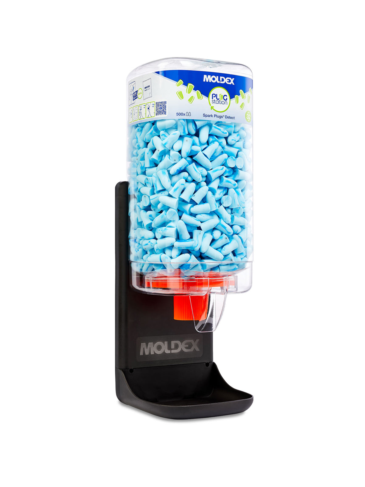 Gli inserti Spark Plugs® Detectabili offrono un’elevata protezione dal rumore – SNR 35 dB. I dispenser consente di distribuire gli inserti auricolari dove necessario.