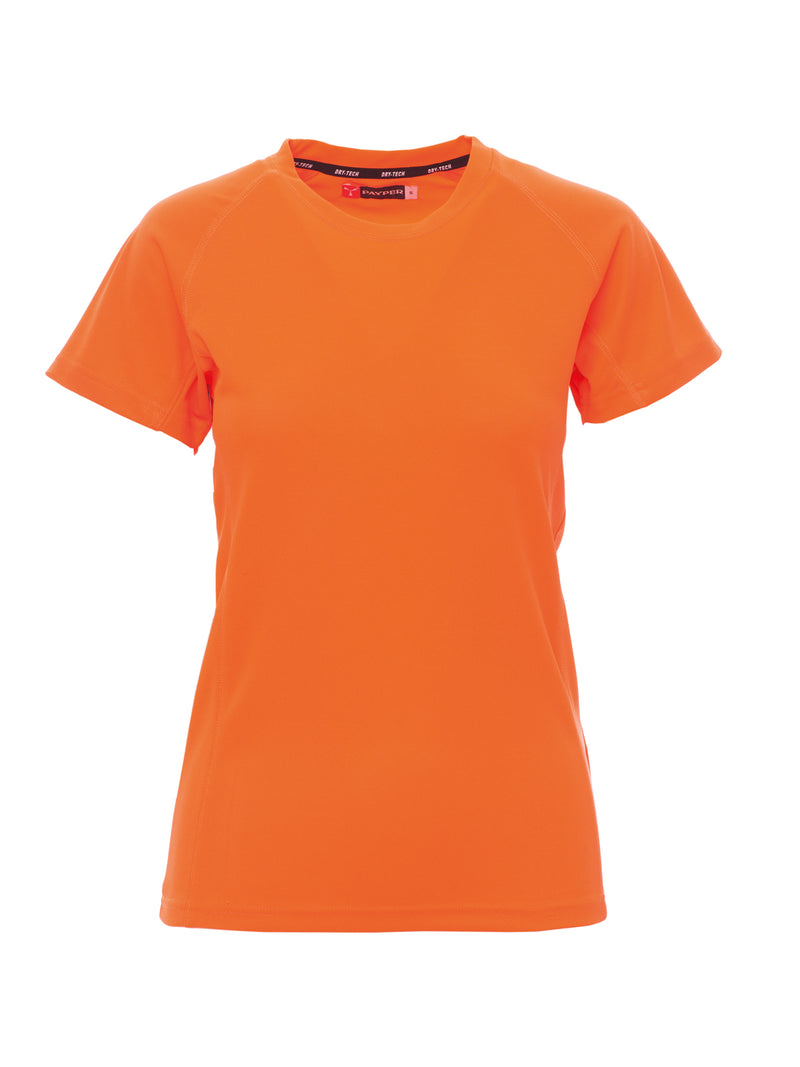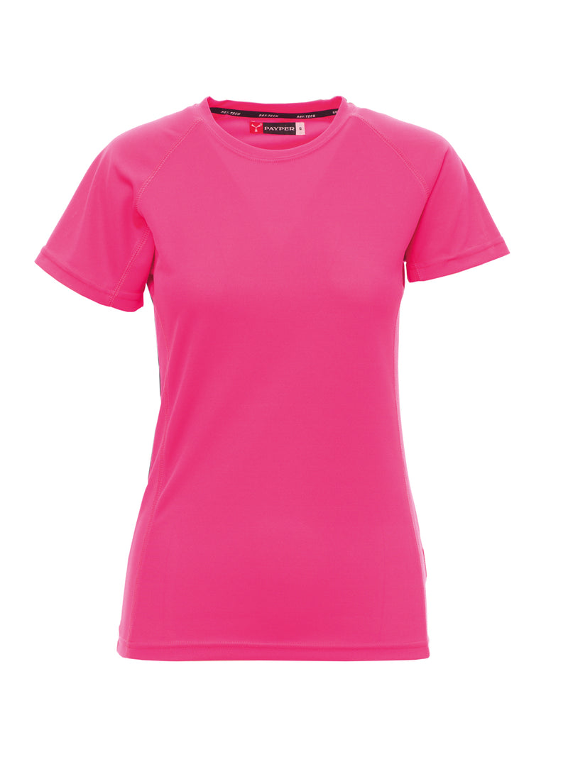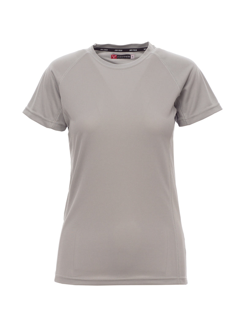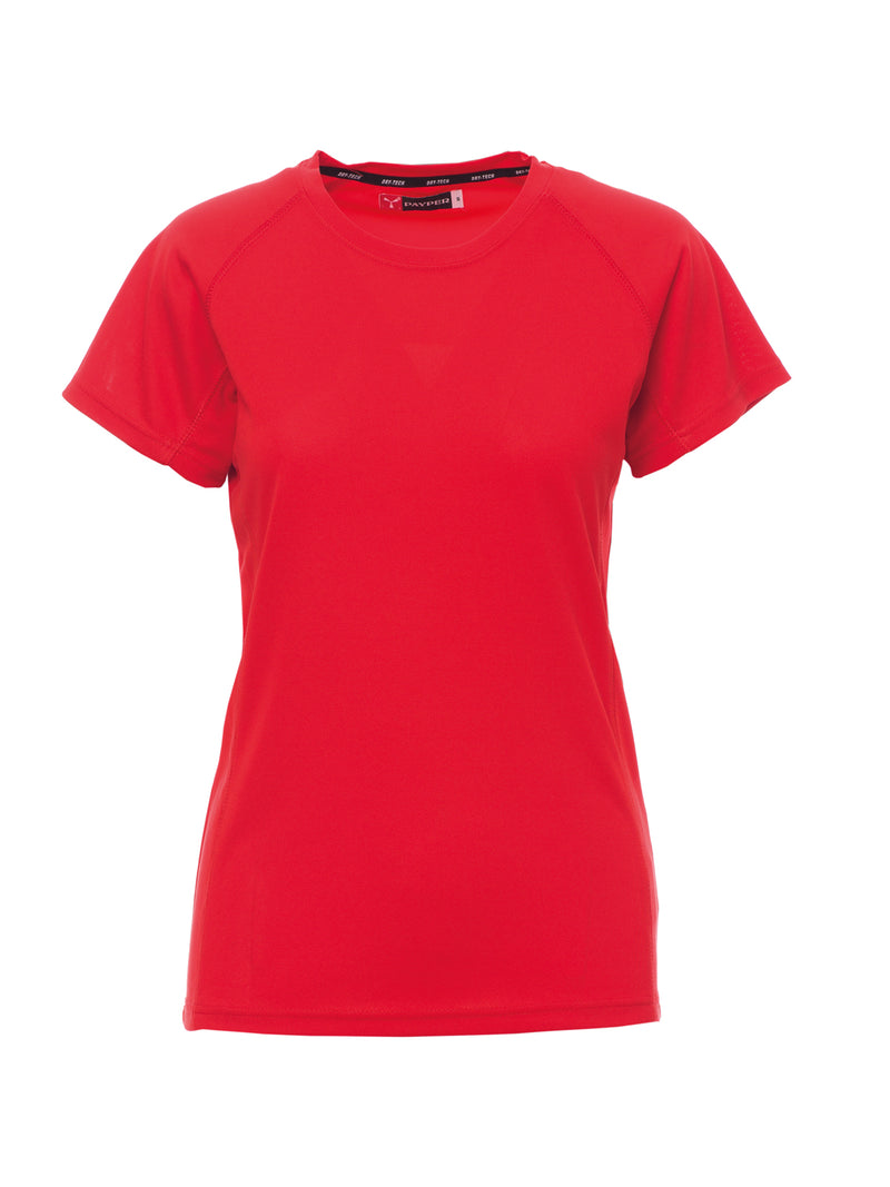 T-shirt tecnica-sportiva da donna, sfiancata, con maniche raglan per maggiore libertà di movimento. Dotata di doppia cucitura laterale per una vestibilità ottimale e nastratura al collo per maggiore comfort. Ideale per attività sportive e uso quotidiano.