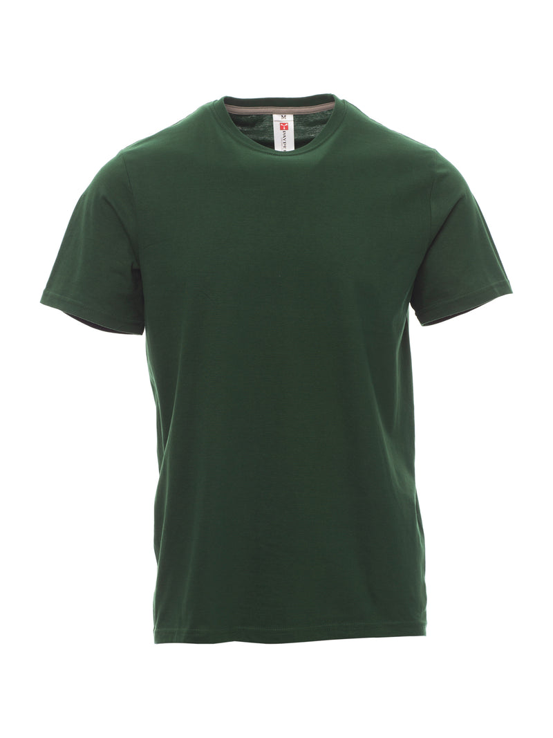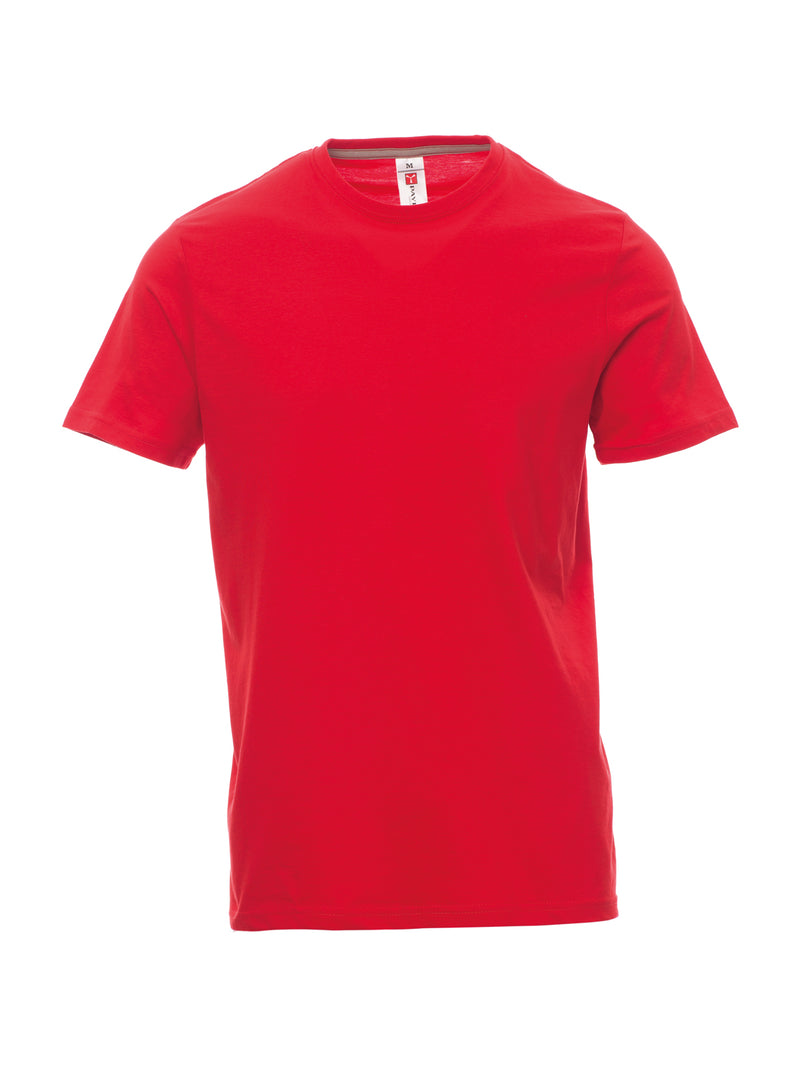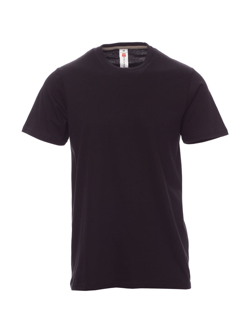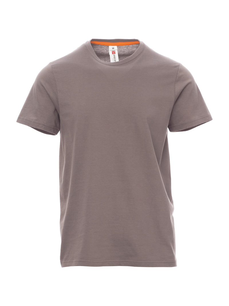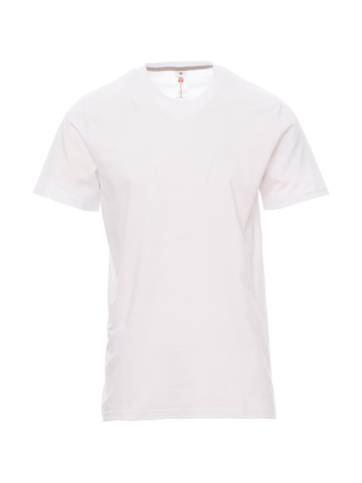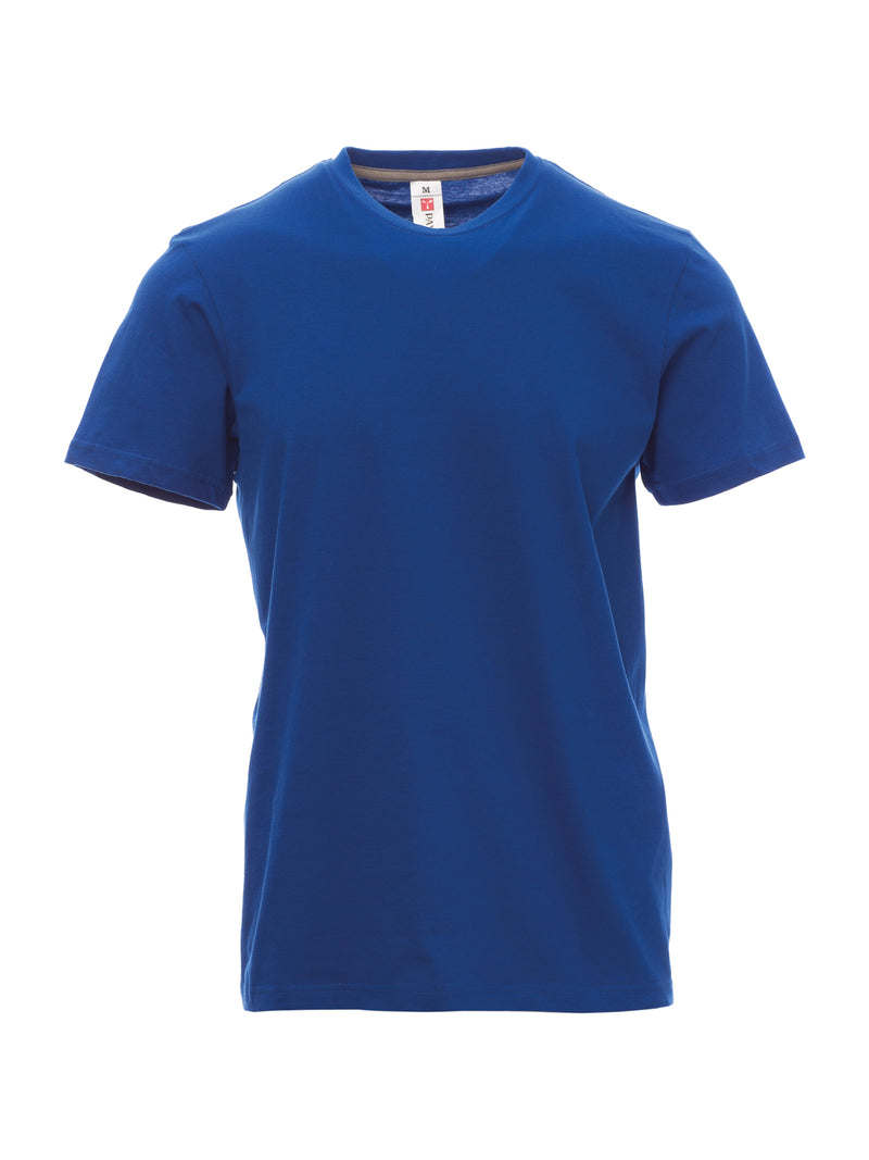 T-Shirt girocollo a mani corta, colletto in costina misto spandex con cucitura ribattuta sul davanti, nastro di rinforzo da spalla in colore a contrasto visibile nel colletto, cuciture stretch, struttura tubolare.