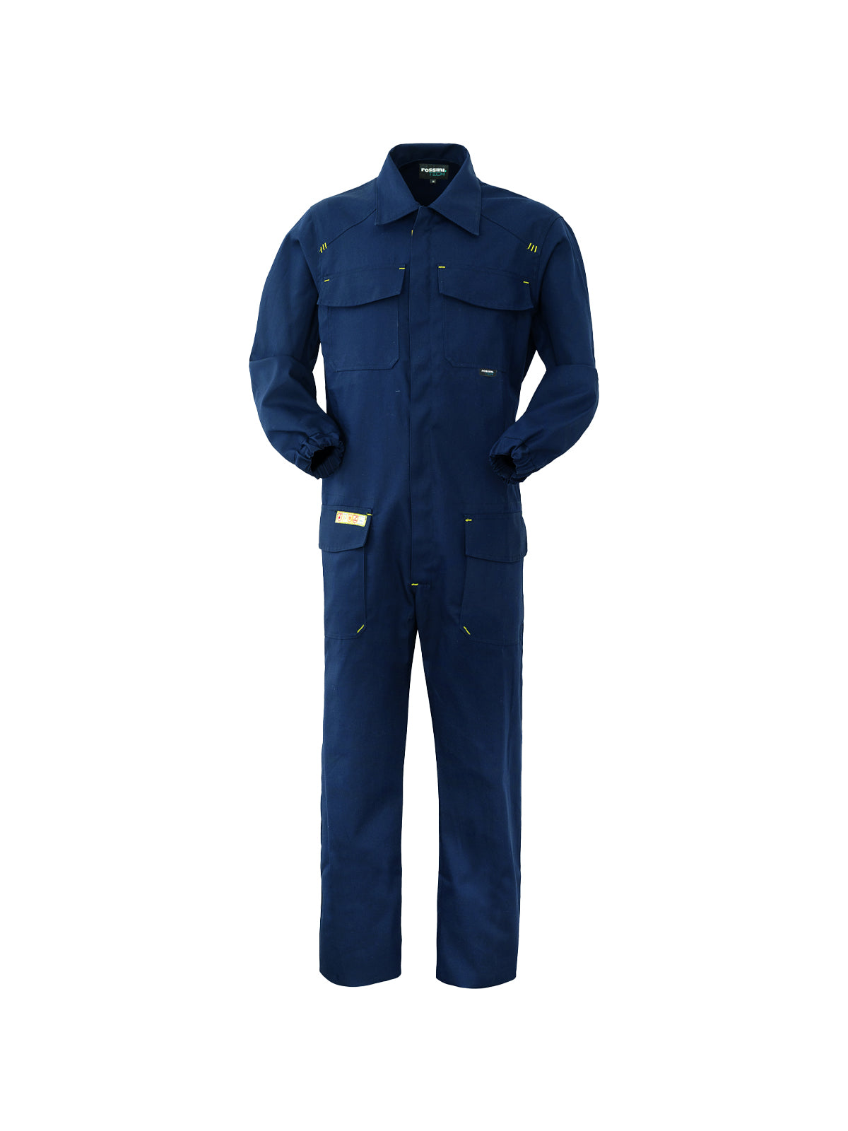 Elastico in vita posteriore, polsi al fondo manica con elastico, etichetta jacquard con pittogrammi cucita su aletta tasca inferiore destra, travette varie di colore giallo, carré posteriore.