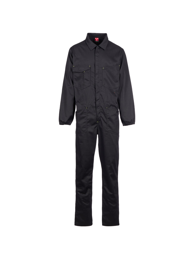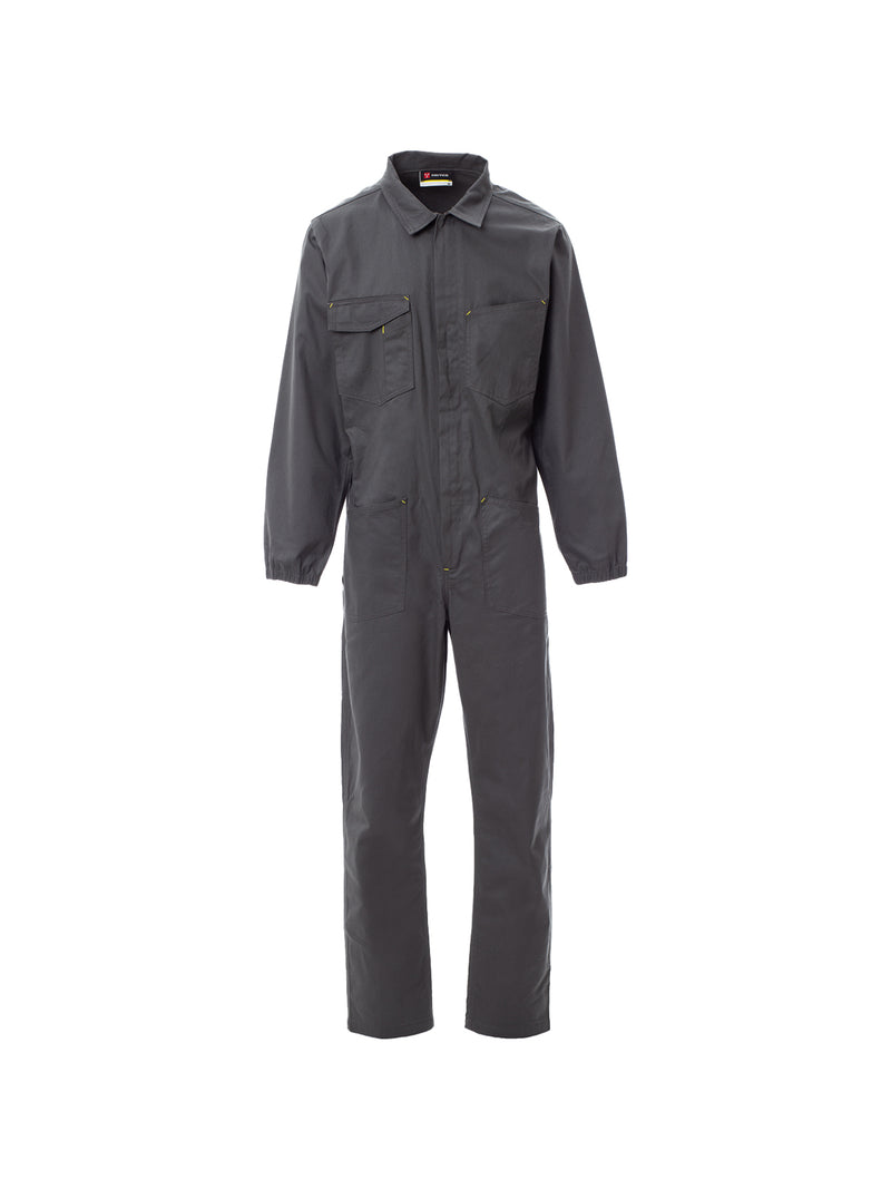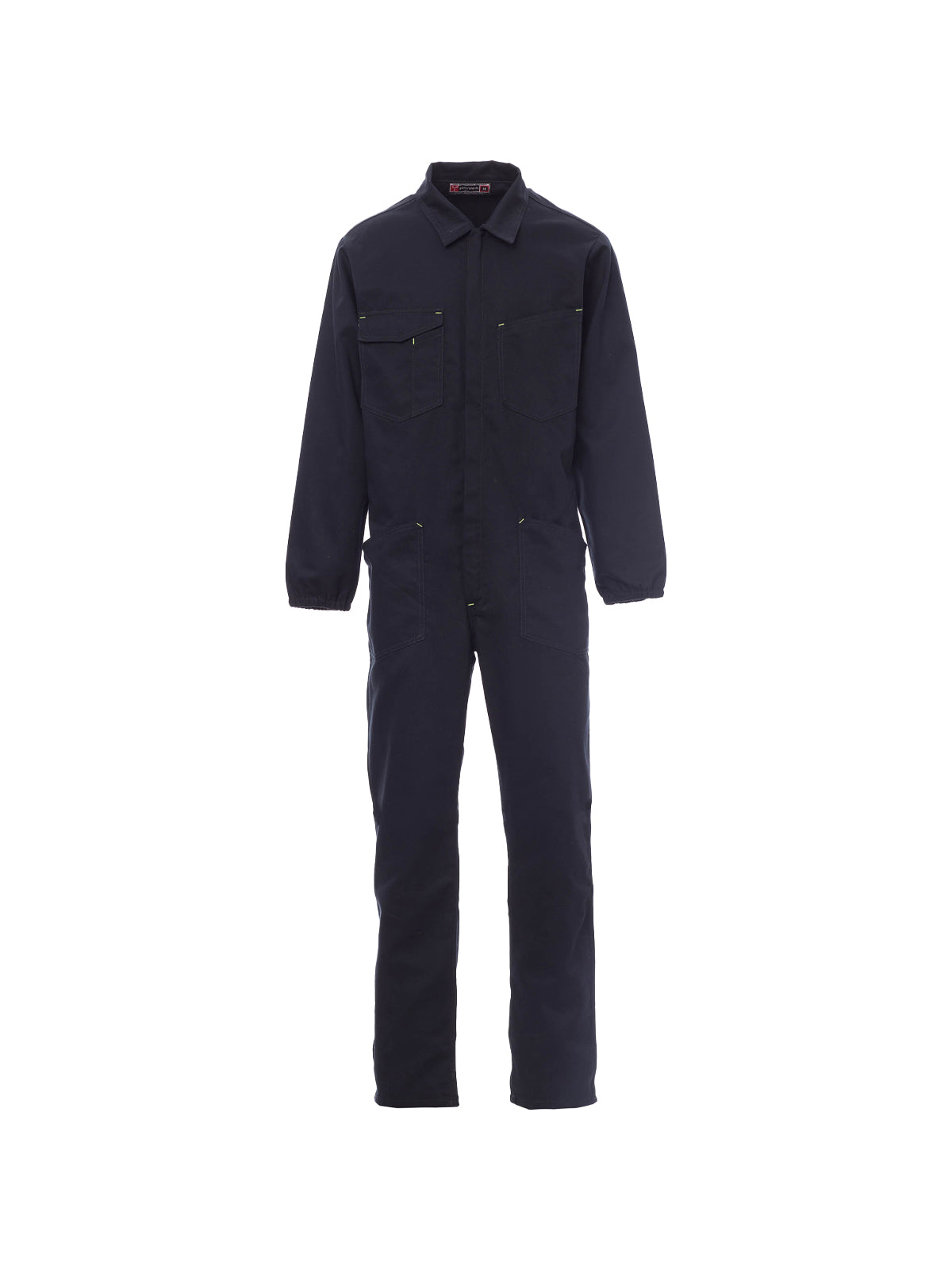 AccediTuta con cerniera centrale a doppio cursore coperta, elastico ai polsi e in vita interno schiena. Due tasche applicate, due tasche al petto di cui una porta smartphone, porta badge, porta penna e patta di chiusura con velcro, tasca porta metro. Cuciture cavallo e interno gamba a doppio ago.