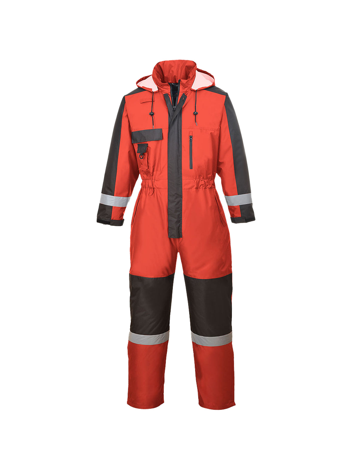 In poliestere Oxford resistente all‘abrasione, include: nastro riflettente per maggiore visibilità, ginocchiere rinforzate per una resistenza ottimale, tasche multiple per riporre gli oggetti e caviglie con cerniera per una facile vestibilità.