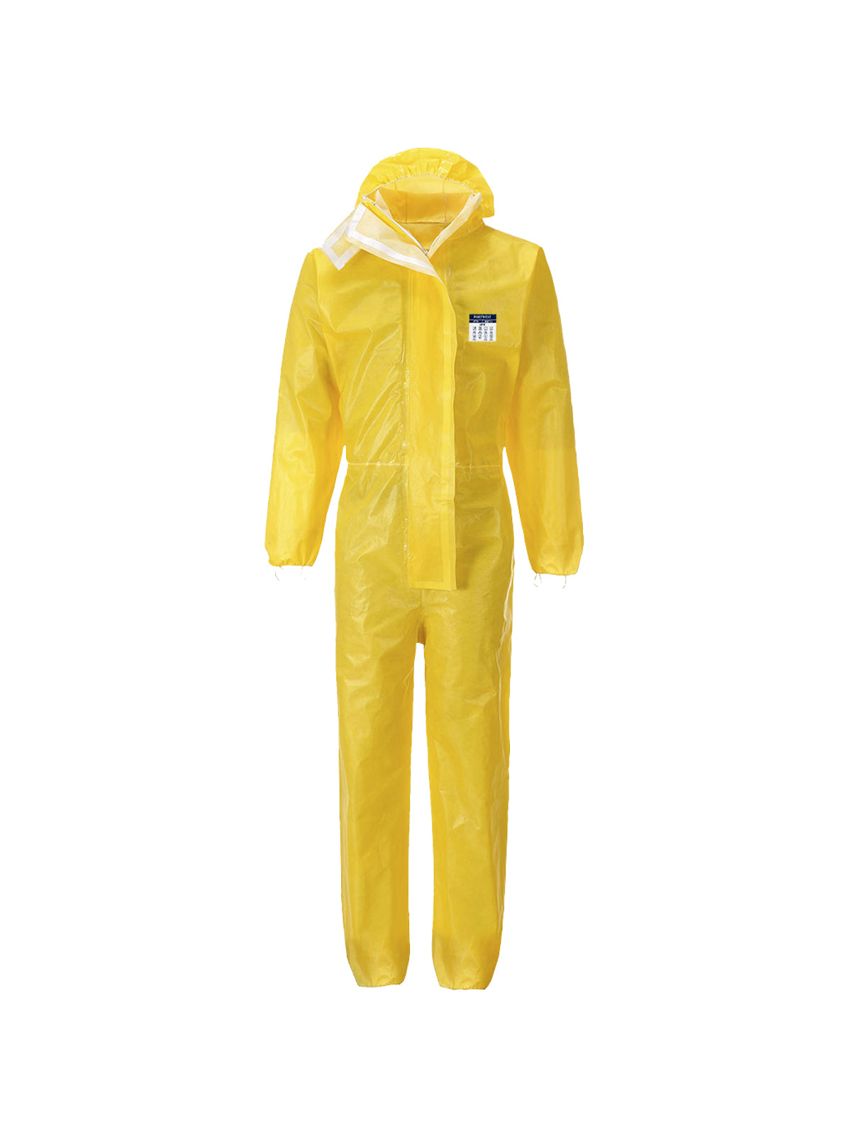 AccediTuta con resistenza meccanica e protezione contro liquidi e particelle, resistente tessuto laminato in polipropilene microporoso che fornisce barriera contro spruzzi chimici e agenti infettivi.